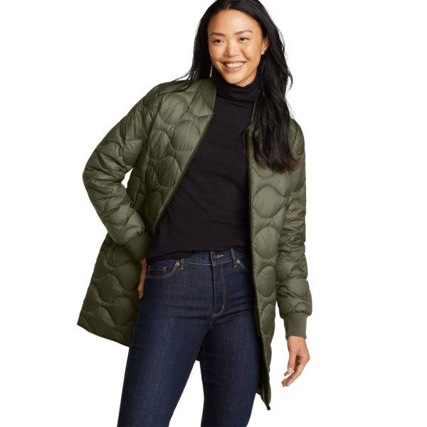 Perfect for transitional fall weather, this bomber jacket features a unique quilted pattern and a longer silhouette. The cozy rib-knit collar and cuffs help seal in heat and secure pockets keep small essentials close at hand.