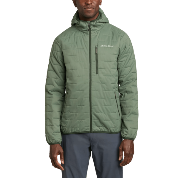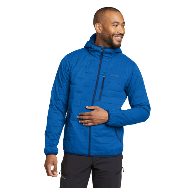 Built for alpine climbing, mountaineering, skiing, and generally being active in cool to cold weather, this hooded jacket is ready for anything. The water-repellent shell has mechanical stretch for mobility. It features discontinuous stitch quilting to minimize built while maximizing warmth. And it has synthetic insulation for lightweight warmth even in damp conditions.