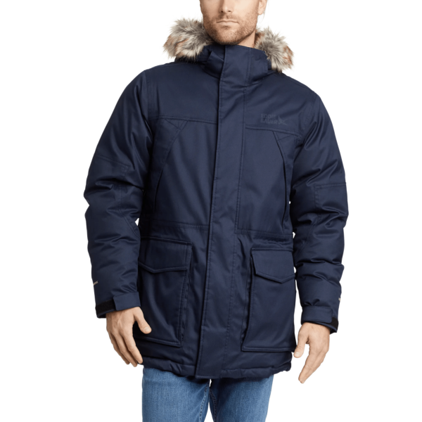 Offering both waterproof protection and sub-zero warmth, this parka is ready for anything winter brings. The durable polyester shell has reinforced sleeves, and the Premium Down insulation ensures superior performance in the cold. The insulated hood includes a removable faux fur ruff.