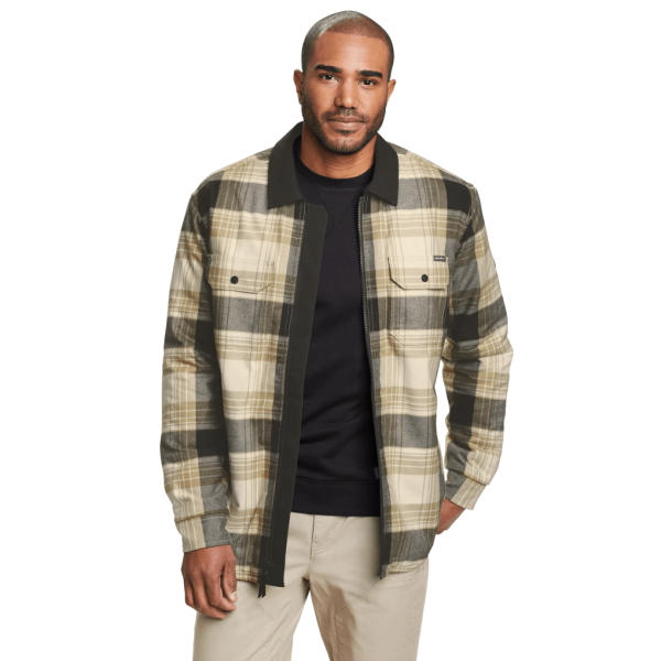 On the outside, our brushed cotton flannel gives the look and feel of a classic work shirt. Inside, faux shearling fleece adds warmth, while lightweight polyester taffeta in the sleeves ensures easy on/off and a perfect fit that never leaves you feeling constricted.