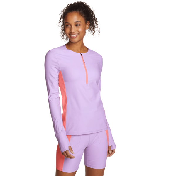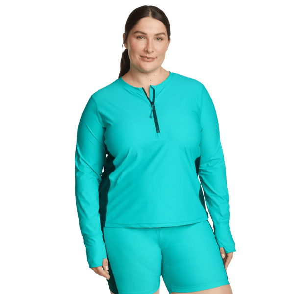 Whether you’re hitting the pool or the surf, our Shoreline Long-Sleeve Rashguard is your skin’s best friend. The chlorine- and saltwater-resistant nylon/spandex blend keeps you free from irritation while providing enhanced protection from intense summer rays. Better yet, it’s made with recycled materials.