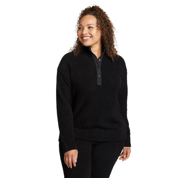 Our Surreal Soft Snap Mock invites you to get cozy and lounge in ultimate comfort. This eco-friendly, recycled polyester top features an elastic waistband and cuffs to help trap heat, and a front-snap placket for extra style.