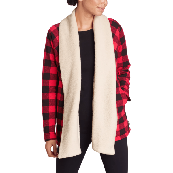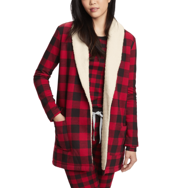 Super soft and cozy, this cardigan has faux shearling fleece lining in the body and collar for added warmth.