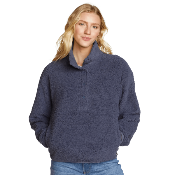This plush pullover is made of thick and cozy faux shearling fleece, adding the perfect amount of warmth to chilly mornings and evenings. It’s versatile enough for outdoor adventures or relaxing at home.