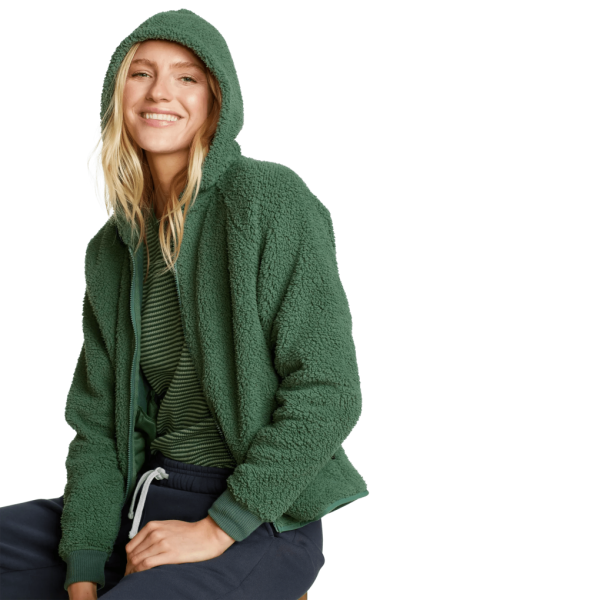 This full-zip hoodie is made of thick and cozy faux shearling fleece, adding the perfect amount of warmth to chilly mornings and evenings. It’s versatile enough for outdoor adventures or relaxing at home.
