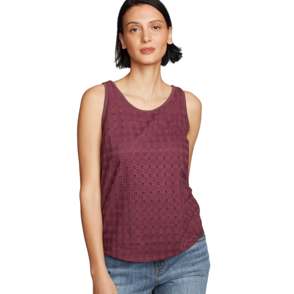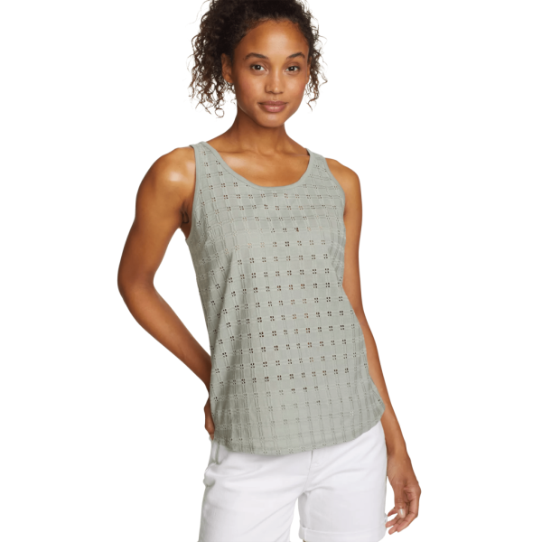 Combining soft jersey fabric with embroidered woven panels this 100% cotton tank is an easy and breathable spring staple, perfect for any occasion.