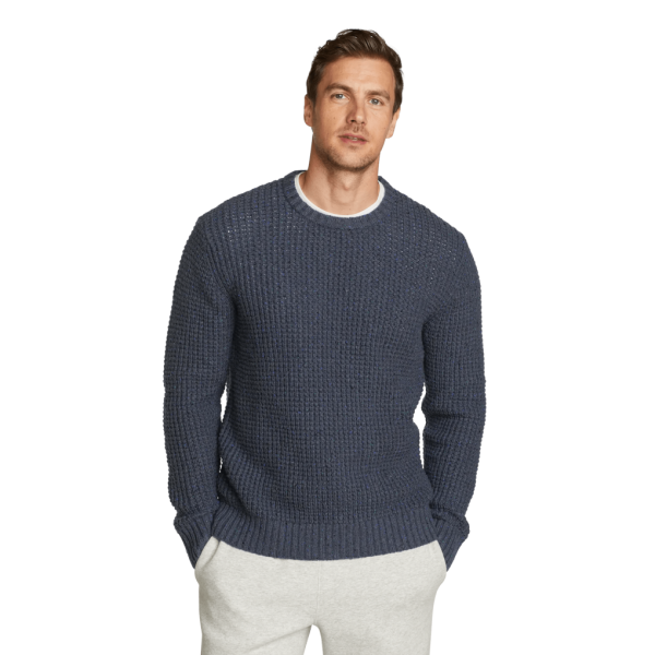 An update on our popular Moguler sweater, this one is slightly thicker and chunkier for extra coziness while lounging. It’s made with a blend of recycled polyester, nylon, and wool with a unique texture that gives it an elevated look.