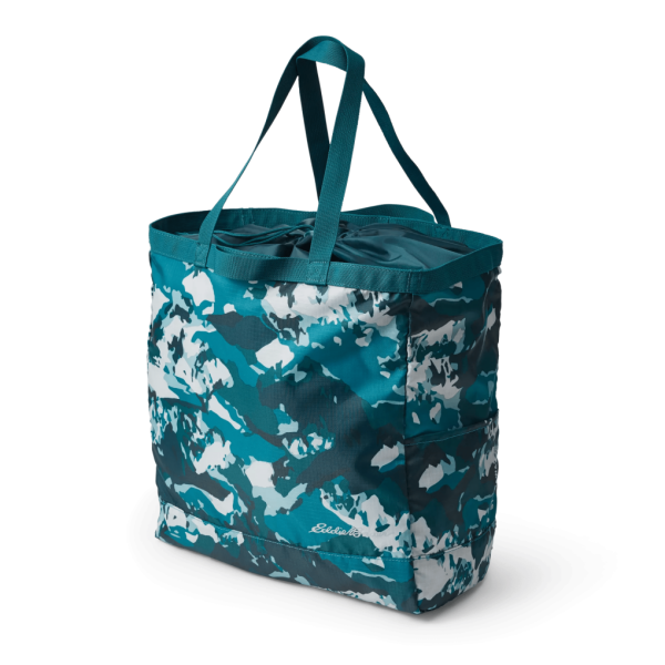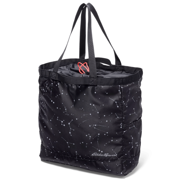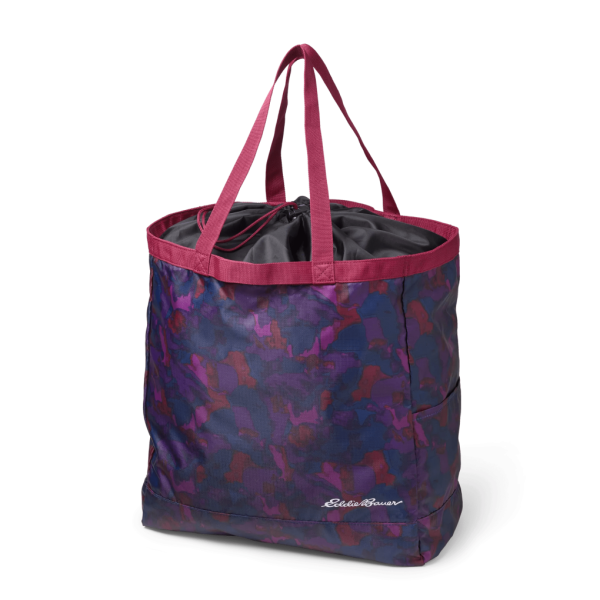 Great for everyday use and travel, this roomy tote has an adjustable cord-lock closure and packs into its own zippered pocket when not in use.
