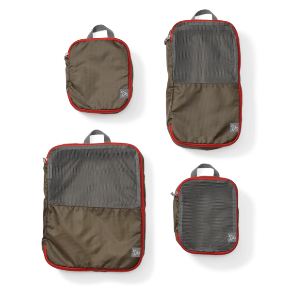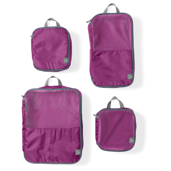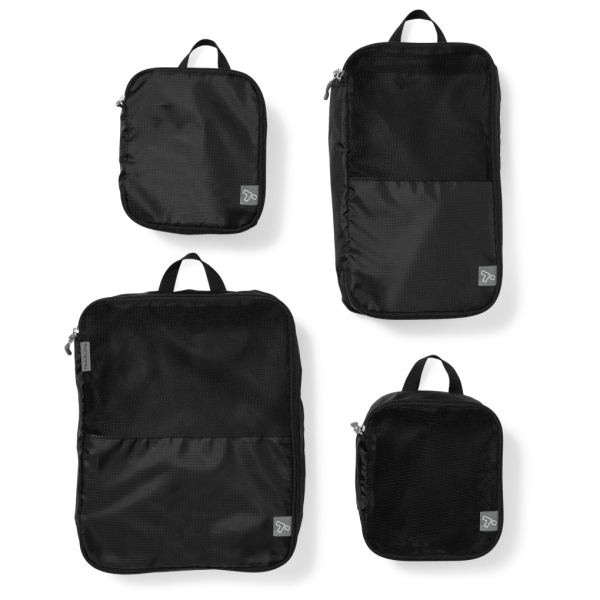 Packing clothes and accessories for travel is faster and easier with this set of four cubes. Soft-sided construction lets you pack them tightly, and the mesh top adds breathability and lets you quickly see what’s inside. Set includes two Small cubes (one with a solid top), one Medium, and one Large.